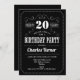 20th Birthday Party - Black White Invitation