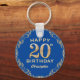 20th Birthday Party Blue and Gold Glitter Frame Key Ring
