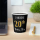 This fancy and luxurious birthday themed paper cup design features a custom name and the message “20th Birthday Party”. The large number “20th” has a faux/imitation gold-inspired colouring pattern, the words “Birthday Party” are in opulent script-style text, and the background is coloured black by default (although it can be customised). Opulent, elegant paper cups like this might be useful at a birthday celebration/party being held to celebrate somebody’s twentieth birthday. [~Z0000567]