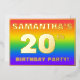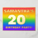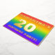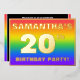 The front of this vibrant and joyful twentieth birthday celebration foil invitation card design features a personalised name, a large number “20th”, the message “BIRTHDAY PARTY!”, and a border. The background of the front features an eye-catching, multicolored, rainbow spectrum inspired gradient pattern. The back features personalised details about the event, such as the date, time, location, and any other important information. Customisable invitations like these might be a fun way to invite attendees to a birthday party/gathering being held to honour somebody’s 20th birthday. [~Z0000599]