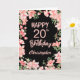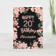 20th Birthday Pink Peach Watercolor Floral Black Card