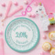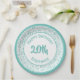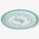 20th Birthday Random Number Pattern 20 Teal/White Paper Plate