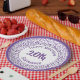 It’s simple to add your name, initials, or monogram to the centre using the provided text templates. This cool design features a purple random number pattern with the milestone number 20 displayed in various sizes and angles for an all-over print. A circle serves as the centre for your text, while purple and white rings adorn the rim.
