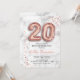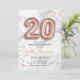 20th birthday party invitation. Elegant design in faux glitter rose gold with gray marble effect. Invite card features gold number 20 balloons, confetti and script font. Perfect for a stylish bday celebration. Message me if you need custom age.