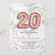 20th Birthday - Rose Gold Balloons Marble Effect Invitation