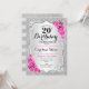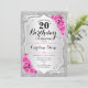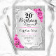 20th Birthday - Silver Stripes Pink Roses Invitation