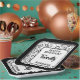 This unique numeric design features a black and white random number pattern with the milestone number 20 displayed in various sizes and angles. A white rounded square serves as the centre for your text, surrounded by black and white elements.