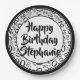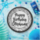 This numeric design has a black and white random number pattern with a black milestone number 20 repeated in varied sizes and angles. There is a white circle in the centre for your text and black-and-white rings around the rim.