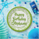This numeric design has a green and white random number pattern with a green milestone number 20 repeated in varied sizes and angles. There is a white circle in the centre for your text and green-and-white rings around the rim.