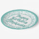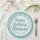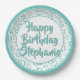 20th Party Random Number Pattern Teal/White Paper Plate