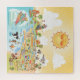 A spectacular cartoon of Southern California – showcasing Los Angeles, Anaheim, San Diego and many other cities plus most beaches. This bright and charming scene has it all – a surfer hangs ten while a mermaid lounges on a rock, a killer whale leaps out of the water, a muscular beach couple both flex to impress, zoo animals wait for tourists and a bull smashes into a bull fighter, all beneath the warm California sun shining high above it all.