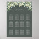 A dark grey green winter wedding seating chart featuring hand painted snowberries and eucalyptus. The template text is set for 12 tables of 10 - all text is fully editable. Alternative layouts and coordinating items are available in my store.