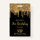 elegant 21st birthday black gold dripping glitters vip pass Badge