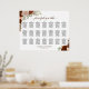 This autumn floral 21 table wedding seating chart features a traditional layout with room for 210 people with 10 seats per table. The rustic boho chic design features hand painted watercolor roses in shades of rust orange and coral peach with an elegant burnt umber coloured script calligraphy title. The names of the couple and wedding date are displayed at the bottom. Beautiful way to add elegance and class to your wedding reception while making it easy for your guests to find their seats.