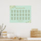 This beautiful seating chart will help your guests find their assigned tables at your wedding reception. It features a simple yet elegant design with gold text on a light green or neo mint colored background. The title is written in script calligraphy lettering and reads: please find your table. The chart is decorated with a frilly floral faux foil gold filigree in the corners. Contains seating assignments for 21 tables at 10 guests per table or 210 guests.