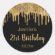 21st birthday black gold dripping glitters classic round sticker