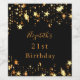 Elegant, classic, glamourous and girly style birthday label. A classic black background decorated with faux gold stars dripping. With the text: 21st Birthday. Personalise and add a name written with a modern hand lettered style script.