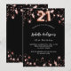21st birthday black rose gold stars invitation