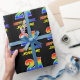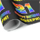 This cheerful, fun, and colourful birthday-themed wrapping paper design features a large number "21" and the message "HAPPY BIRTHDAY,", both having a rainbow spectrum gradient inspired pattern colouring, along with a bold yellow custom recipient name. The background is coloured black. Fun wrapping paper like this may be used when wrapping a birthday present or gift being given to somebody who is celebrating their twenty first birthday. [~Z0000475]