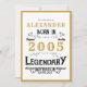 For those born in 2005 and celebrating their 21st birthday we have the ideal birthday party invitation with a vintage feel. The white background with a black and gold vintage typography design design is simple and yet elegant with a retro feel. Easily customize the text of this birthday gift using the template provided.