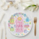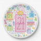 A pretty feminine paper party plate with the custom number 21 on birthday cakes and presents for any 21st birthday. Make it personal by adding the birthday girls name