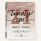 Modern chick 21st Birthday Guest Book Notebook. Design featuring champagne sparkly glitter texture, twenty one in trendy handwritten script in black and rose gold colour. Personalise with your details in block capital lettering.