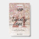 Modern chick 21st Birthday VIP badge. Design featuring champagne sparkly glitter texture, twenty one in trendy handwritten script in black and rose gold colour. Personalise with your details in block capital lettering.