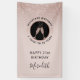 On a background of delicate girly blush pink our vertical 21st Birthday party banner features a sparkling blush glitter ombre overlay for extra party glam. Inside a black and rose gold circle logo, bubbling champagne glasses clink together in a toast to the birthday honoree. You can easily revise the milestone birthday details on the personalisation template.