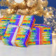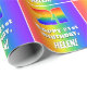 This exciting and vibrant birthday wrapping paper design features a large number “21” with a colourful rainbow spectrum inspired gradient pattern, along with the message “HAPPY 21st BIRTHDAY,”, and a personalised recipient name. The background also features a cheerful multicolored rainbow spectrum inspired gradient pattern. Wrapping paper like this might be used when giving a gift or present in honour of somebody’s twenty first birthday. [~Z0000572]
