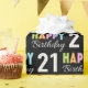 Roll of brightly coloured wrapping paper with a yellow background of a simple typography "Happy Birthday" using block letters for HAPPY and a casual script for Birthday. The Number 21 is decorated with colourful polka dot confetti. A wrapping paper you can use for any one.