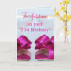 Personalise this 21st birthday card for that special young lady. This card features a blue and pink colour theme with bright pink heels. At the top is her name written in lovely pink cursive lettering with "on your 21st Birthday" underneath. There are two wine glasses in the background and the bright pink heels are at the bottom. The inside of the card continues the blue and pink colour theme with a warm message. Personalise this greeting card today!