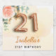 For an elegant and feminine 21st birthday birthday party. A golden watercolored background. Decorated with a rose gold and blush pink watercolored rose flower, floral, green eucalyptus leaves, sprigs, greenery and faux gold sprigs. Personalise and a name. Black and golden letters. The name is written with a modern hand lettered style script. Number 21 is written with a golden balloon style font.