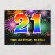 21st Birthday – Fun Fireworks Pattern + Rainbow 21 Postcard