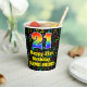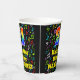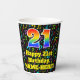 This colourful and joyful music-themed birthday paper cup design features a large number “21” having a rainbow spectrum gradient inspired pattern. It also features the message “Happy 21st Birthday,”, and a personalised name. The background features a multicolored pattern of various music notes and symbols having a variety of colours and sizes. Colourful, vibrant paper cups like this might be fun to have at a birthday party being held to honour somebody’s 21st birthday. [~Z0000541]
