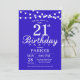 21st Birthday Invitation with String Lights. Navy Blue Background. 13th 15th 16th 18th 20th 21st 30th 40th 50th 60th 70th 80th 90th 100th, Any age. For further customisation, please click the "Customise it" button and use our design tool to modify this template.