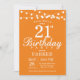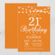 21st Birthday Invitation with String Lights. Orange Background. Men or Female Lady Elegant bday Invite. 13th 15th 16th 18th 20th 21st 30th 40th 50th 60th 70th 80th 90th 100th, Any age. For further customisation, please click the "Customise it" button and use our design tool to modify this template.