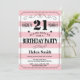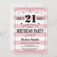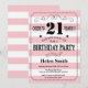 21st Birthday Invitation Pink and White Stripes Typography. Cheers to 21 years. Adult Birthday. Male Men or Women Birthday. Kids Boy or Girl Lady Teen Teenage Bday Invite. 13th 15th 16th 18th 20th 21st 30th 40th 50th 60th 70th 80th 90th 100th. Any Age. For further customisation, please click the "Customise it" button and use our design tool to modify this template.