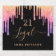 A trendy and glamourous 21st birthday label. A classic black background decorated with rainbow drips, paint dripping look in purple, pink and gold. With the text: 21 and Legal. Personalise and add a name. Golden coloured text. The word Legal is written with a modern hand lettered style script.