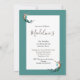 A lovely mermaid floating across the card is the basis of this birthday custom invitation design on a teal background.