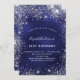 A modern, stylish and glamourous invitation for a 21st (or any age) birthday party. A navy blue background, decorated with faux silver glitter dust. The blue colour is uneven. Personalise and add your name and party details.