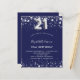 A modern, stylish and glamourous invitation for a 21st birthday party. A navy blue background, decorated with faux silver stars. Personalise and add your name and party details. Number 21 is written with a balloon style font.
