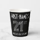 This elegant Roaring Twenties era inspired art deco look birthday themed paper cup design features a customisable name, plus the message “21ST BIRTHDAY PARTY!”. The number “21ST” has a fancy geometric lined appearance. Stylish paper cups like this might be fun to use at a birthday party in honour of somebody’s twenty-first birthday, or some other 21st event. [~Z0000658]