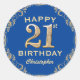 21st Birthday Party Blue and Gold Glitter Frame Classic Round Sticker