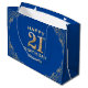 21st Birthday Party Blue and Gold Glitter Frame Large Gift Bag