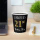 This elegant and fancy birthday themed paper cup design features an editable name and the message “21st Birthday Party”. The large number “21st” has a faux/imitation gold-inspired colouring pattern, and the words “Birthday Party” are in luxurious script-style text. The background is coloured black by default (although it can be customised). Luxurious, opulent paper cups like this might be useful to have at a birthday celebration being held in celebration of somebody’s twenty first birthday. [~Z0000567]