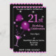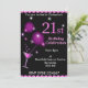 21st Birthday Party Invitation, pink and black with cocktail glass