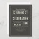 21st birthday party invitations with a classy modern charcoal black design. Great for a birthday cocktail party. Change the custom wording to fit your party needs.