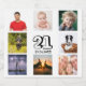 A bottle label for a 21st birthday party for a guy, celebrating his life with a collage of 8 of your photos. Templates for a name, age 21 and a date. Date of birth or the date of the party. Black coloured letters. White background.