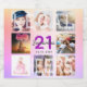 A bottle label for a 21st birthday party, celebrating her life with a collage of 8 of your photos. Personalise and add a name, age 21 and a date. Date of birth or the date of the party. Purple and dark grey coloured letters. Elegant and trendy rainbow coloured background in purple, violet, pink and rose gold. The text: Legal and Cheers written over the photos as watermarks.