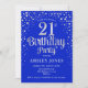 Elegant design in royal blue and faux glitter silver. Features stylish script font and confetti. Message me if you need custom age.